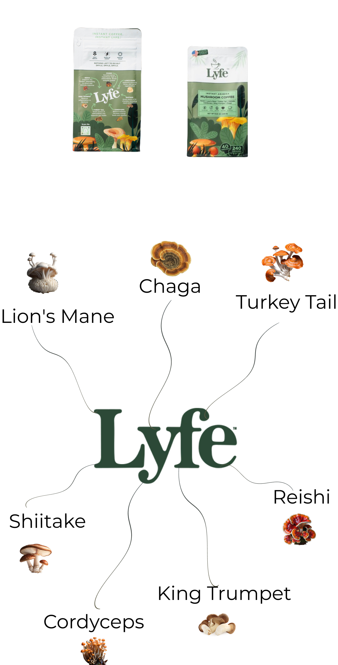 We believe in full ingredient transparency. You can find a detailed list of ingredients for each Lyfe Mushroom Coffee blend on the product page or by contacting us directly.